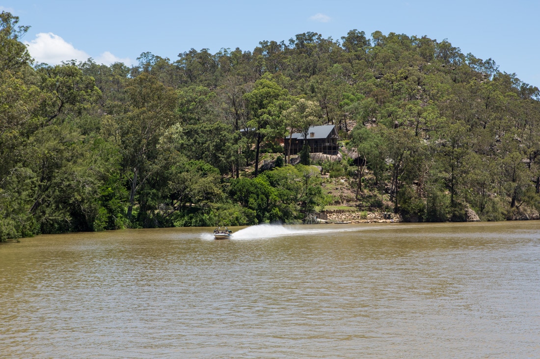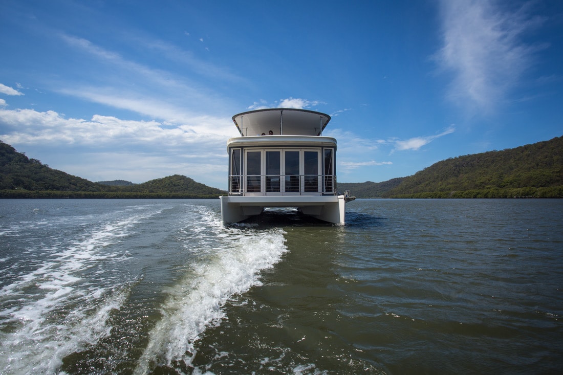 Berowra Waters is an idyllic spot. It’s a steep flooded valley. The houses cling to the waters edge, many only accessible by boat. Quietly we make our way but I’m aware of the straining necks of locals eating breakfast as we pass by. The Mothership does turn a few heads.